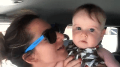 My friend Becca shows me how to change a diaper thanks to her daughter, Basil, in a car.