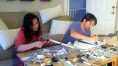 Sharon teaches me her crafty ways around a button maker.